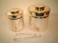 シルバープレイテッドのアイスボックスです。シルバー色の綺麗なボックスから氷を入れれば、飲み物がさらにおいしくなります。写真左の商品です。サイズ:Φ12×15.5cm