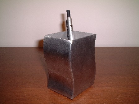 ステンレスで出来たペンケースです。ウエーブした本体のデザインが特徴的です。サイズ:7×6×10.5cm(高さ)材質:ステンレススチール