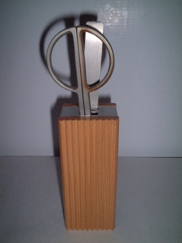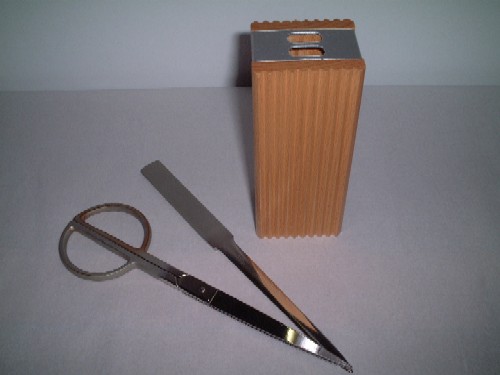 ハサミとペーパーナイフが天然木(ブナの木)で出来たホルダーに入っています。サイズ:5×4.5×19cmemform(ドイツ)製