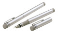 シルバー色がスタイリッシュな万年筆とローラーペンのセットです。