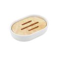 天然木とホワイト陶器の温かみを感じるソープディッシュです。 ナチュラルブラウンと白のコンビネーションがマッチして、バスルームをお洒落に飾ってくれます。