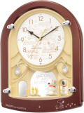 メロディと共に文字盤下の人形が回り、動きがあって楽しいクロックです。