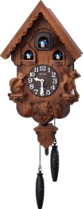 毎正時になると3羽のカッコーが扉を開け、鳴いて数取りする可愛いカッコークロックです。(30分には1回鳴きます。)巣箱をデザインした木製のケースがナチュラルな雰囲気を作り出し、お部屋を明るく楽しく飾ってくれます。