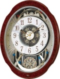 毎正時になると、メロディと共に数字の下から音符が回転しながら現れ、6個のLEDランプがメロディに合わせて点滅する、からくり時計です。文字盤下部にはスワロフスキーのクリスタル回転飾りが優しく回り、見ても聴いても楽しいクロックです。