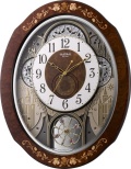毎正時になると、メロディと共に文字盤が回転しながら時を知らせるお洒落なからくり時計です。バラの花柄象嵌細工でデコレーションしたフレームは、高級感、優しさ、温かみがあり、お部屋を豪華に華やかに彩ります。