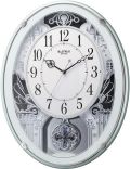 毎正時になるとメロディで時を知らせるクロックです。文字盤下部にはスワロフスキーのクリスタル付き飾り振り子が優しく優雅に揺れて、見ても聴いても楽しいクロックです。