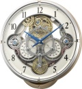 毎正時になると、メロディと共に文字盤が360度回転するからくり時計です。文字盤背面にある歯車がそれぞれ回転し、LEDか点滅します。スワロフスキーのクリスタル飾りが美しく、見ても聴いても楽しいクロックです。