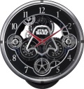 毎正時になると、メロディと共に文字盤が360度回転するスターウォーズのからくり時計です。文字盤背面にある歯車がそれぞれ回転し、LEDが点滅します。スワロフスキーのクリスタル飾りが美しく、見ても聴いても楽しいクロックです。