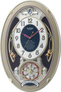 下部クリスタライズ飾り付振り子、メロディ30曲、自動鳴り止め明暗センサー機能(室内が暗くなると自動的に消音)、メロディON/OFFスイッチ、音量調節機能、お休み秒針 、電池交換お知らせ機能等うれしい多機能タイプです。
