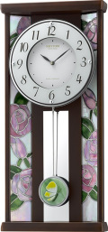 バラの花をモチーフにしたステンドグラスで自然の美しさを表現した、優しく時を刻む振り子時計です。