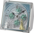 スワロフスキー・クリスタル飾り付、メロディ27曲、自動鳴り止め明暗センサー機能(室内が暗くなると自動的に消音)、メロディON/OFFスイッチ、音量調節機能 、電池交換お知らせ機能等うれしい多機能タイプです。
