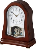 毎正時になるとオーロラサウンドで時を知らせる置き時計です。 (OFFスイッチ付き) 正時メロディーは全12曲で、メロディを順番に流してくれる楽しいサウンドは、実際に楽器から音を取り込んで構成された高音質サウンドで、実際の演奏を聞いているような臨場感ある音色です。 天然木製のフレームが、高級感と暖かさを感じさせてくれる置時計は、 ゆっくりと動く美しいスワロフスキー・エレメント回転飾りがとても優雅で落ち着きを与えてくれます。 メロディ12曲、部屋が暗くなると自動的に消音する自動鳴り止みセンサー、OFFスイッチ、音量調節機能、サイレントステップ秒針、夜眠る秒針、電池交換お知らせ機能等うれしい機能付きです。 ●サイズ:33.4cm(高さ)×25.5cm(幅)×14.9cm(奥行) ●材質:木枠(アルダー材:バーズアイメープルつき板貼り)、風防(ガラス) ●カラー:茶色半艶仕上げ(白) ●ムーブメント:正時メロディ電波時計 ●重量:2.7kg ●電源:単3アルカリ乾電池×6(付属) ●リズム時計製 ●保証期間:1年 ■ 商品説明毎正時になるとオーロラサウンドで時を知らせる置き時計です。正時メロディーは全12曲で、メロディを順番に流してくれる楽しいサウンドは、実際に楽器から音を取り込んで構成された高音質サウンドで、実際の演奏を聞いているような臨場感ある音色です。 ■ 商品仕様