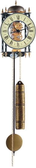 機械式ムーブメントが見えるスケルトンタイプの振り子時計です。