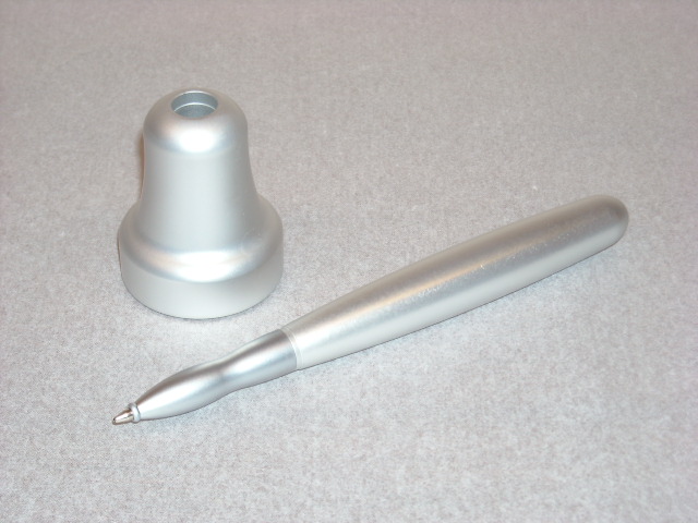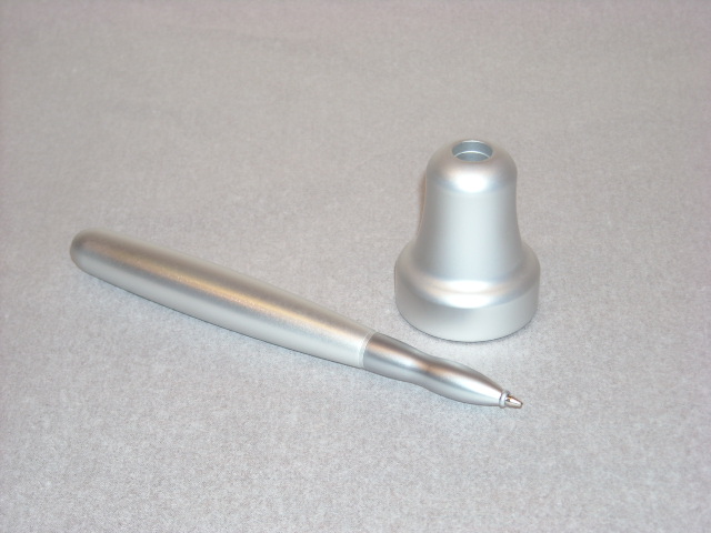 ハンドベルをデザインしたユニークなスタイルのペン&ペンスタンドです。 デスクを飾るインテリアとしての必需品!色々なタイプのデスクにも合わせ易い商品です。 (ペン付き)サイズ:13.5cm(高さ)×Φ3.7cmペンサイズ:13.1cm長さ×Φ1.5cm 重量:105g インク色:ブラック リフィール:パーカータイプ1