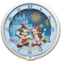 毎正時、メロディーで時を知らせるミッキーとミニーの可愛い掛け時計です。