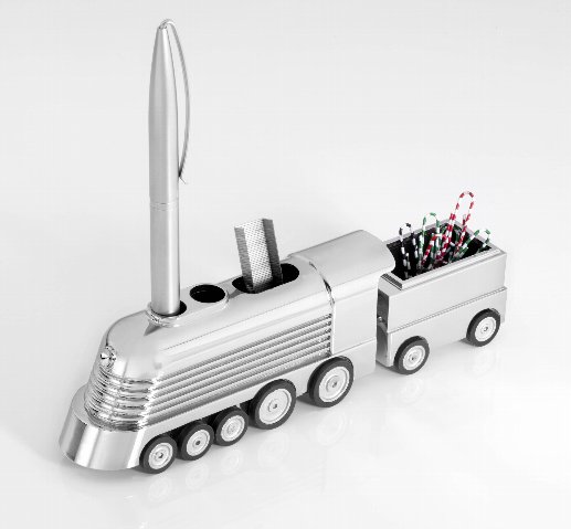 ●デスクを楽しくさせるペーパーウエイト ●嬉しいマルチホイルダー付き! 列車型のペーパーウエイト&クリップホルダーです。 ペンスタンドも付いて、デスクを楽しく飾るアイテムです。 ギフトボックス入りですから、プレゼントにもおしゃれな商品です。 ●サイズ:17.5長さ×3.5奥行×5.2高さcm ●TROIKA製(ドイツ) ●重量:181g ●材質:メタル ●可動式 ●クリップ5個付き