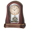毎正時、高音質ハイファイ音源メロディで時を知らせるSEIKOのウッド置時計エンブレムです。