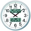 シンプルで見やすいオフィスタイプのセイコー大型電波掛け時計です。 便利な日付、温度、湿度のデジタル表示付きです。 電池寿命5年のロングライフタイプで、電池交換の手間も少なく便利なクロックです。