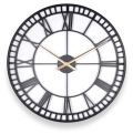 英国・ロジャーラッセルRogerLascelles社製大型サイズのレトロ調掛け時計です。壁面が見えるスケルトンタイプですから、お部屋に合わせやすいデザインです。メタルフレームにローマ数字のメタル時刻表示がお洒落です。