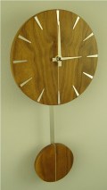 ウォルナットの1本の無垢材をカットして、左右に開いた状態文字盤にした、お洒落なインハウスの振り子掛け時計です。INHOUSE製