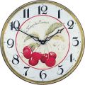 お洒落なチェリーデザインの壁掛け時計は、年代を感じさせる仕上げとカラーリングで、