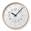 白い文字盤に、黒いアラビア数字の時刻表示と黒いシンプルな針がとてもバランスが良い上品で洗練されたクロックです。