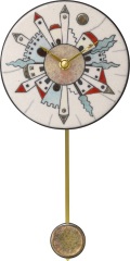 イタリア人陶芸家アントニオ・ザッカレラ製作の魅力的な陶器製アート振り子時計です。作品はすべて手作りで、手書きによる絵柄と焼き加減により表現される色合いが、優しさと温かさを感じさせる存在感のあるクロックになっています。