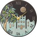 イタリア人陶芸家アントニオ・ザッカレラ製作の魅力的な陶器製アート掛け時計です。 オリーブの木と夜の街並みのデザインがお洒落なクロックです。 作品はすべて手作りで、手書きによる絵柄と焼き加減により表現される色合いが、優しさと温かさを感じさせる存在感のあるクロックになっています。