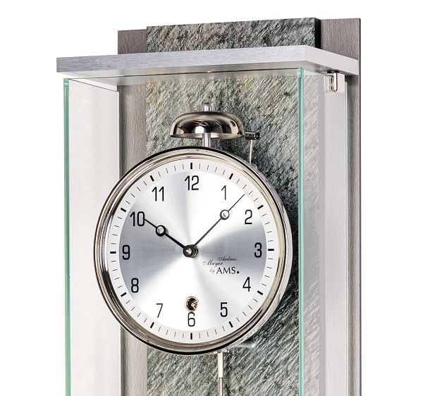 ドイツAMS社製の機械式振り子時計です。 毎時ベルを打って時を知らせるクロックは、 STONEとガラスの本体に、アルミニウムの文字盤がマッチして、高級感があるデザインに仕上がっています。