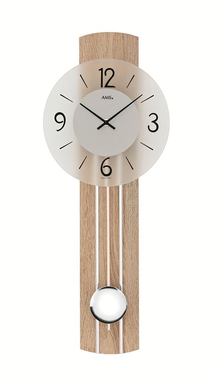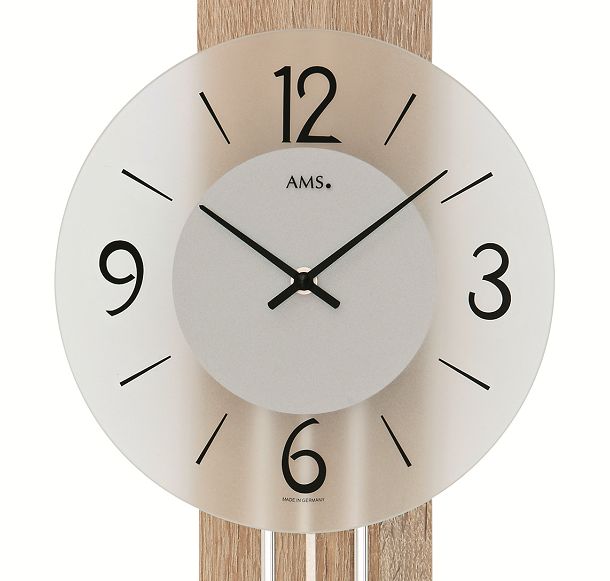 シンプルでスマートなドイツAMS社製の振り子時計です。ガラスの文字盤と天然木の本体、クロームの振り子がマッチして、とてもスマートなデザインに仕上がっています。