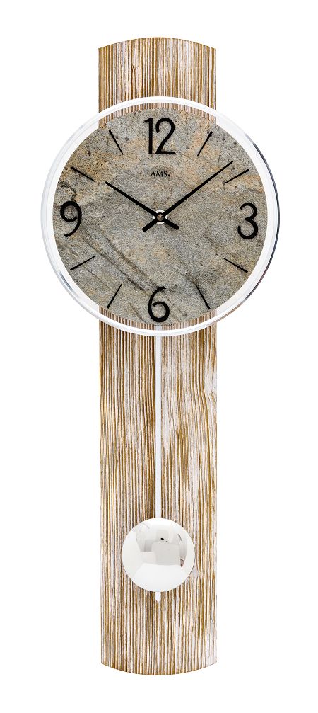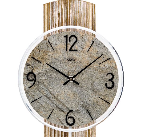 スタイリッシュでお洒落なデザイン、木の温もりを感じるドイツAMS振り子時計です。 シャープなスタイルの本体デザインにストーンのシンプルで見やすい文字盤がベストマッチです。