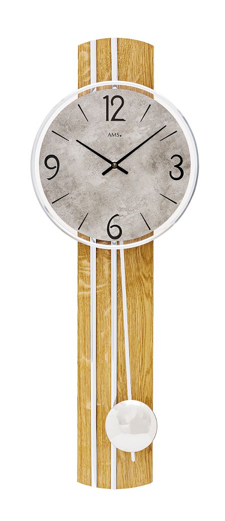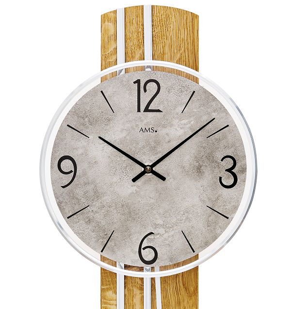 スタイリッシュでお洒落なデザイン、木の温もりを感じるドイツAMS振り子時計です。 シャープなスタイルの本体デザインにストーンのシンプルで見やすい文字盤がベストマッチです。