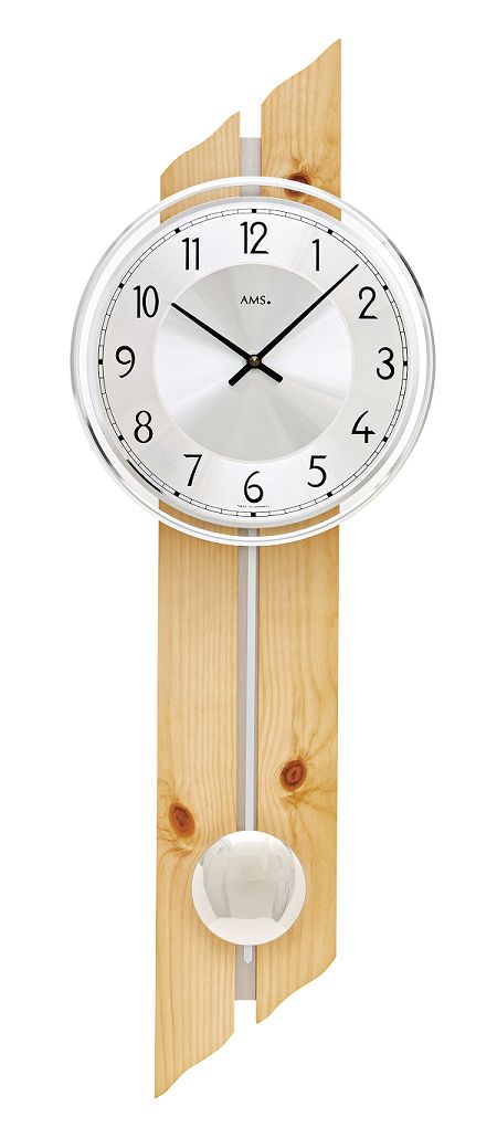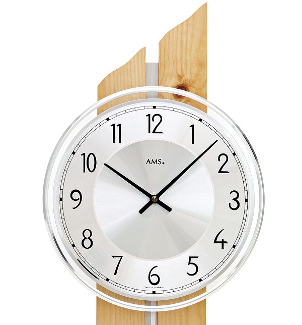 スタイリッシュでお洒落なデザイン、木の温もりを感じるドイツAMS振り子時計です。 シャープなスタイルの本体デザインにシンプルで見やすい文字盤がベストマッチです。