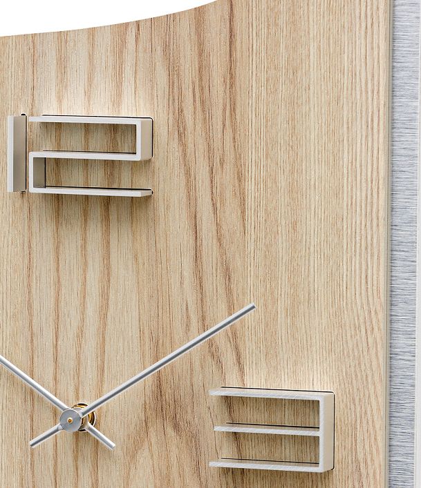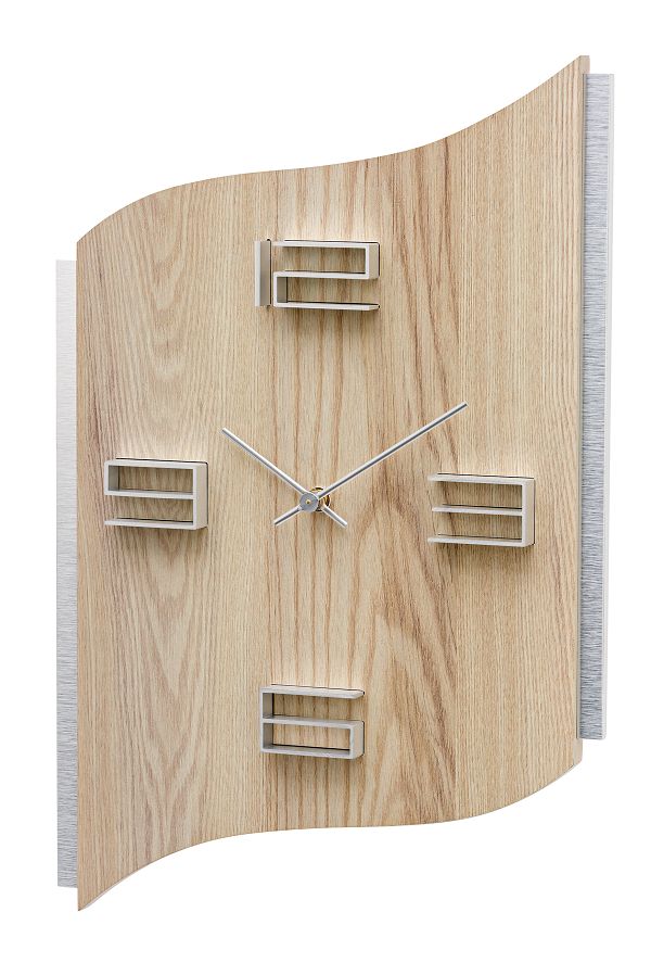 温かみを感じるお洒落な壁掛け時計です。(ドイツAMS社製) 斬新な本体スタイルとシンプルで見やすい木製文字盤が魅力的です。