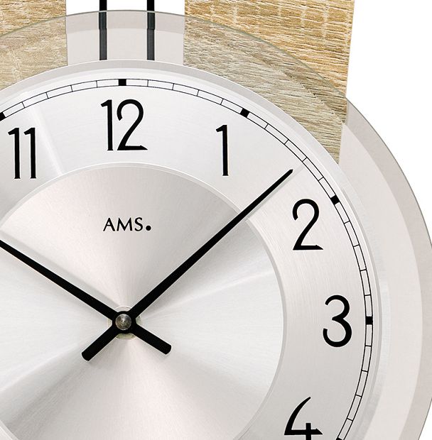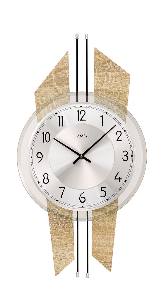 ソノマウッドとガラスのコンビネーションがお洒落な壁掛け時計です。(ドイツAMS社製)< 斬新な本体スタイルとシンプルで見やすい文字盤が魅力的です。