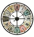 アンティーク調のメタルフレームが斬新な壁掛け時計です。(ドイツAMS社製) 時刻マークのバックに描かれたカラフルなデザインが目を引きます。