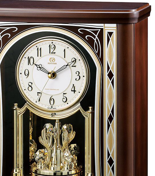 高級感あるウッドボックスと文字盤両サイドのデコレーションが魅力の電波置き時計です。