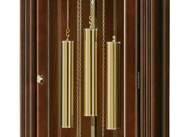 優雅に揺れる振り子や、質感のあるチェーンドライブの錘で、高級感と存在感を感じさる豪華なクロックです。