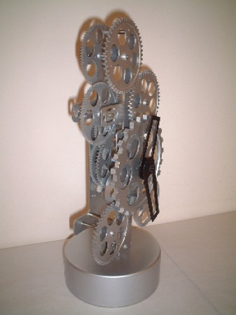 ギアが回って時を刻むギアクロック。盆栽をイメージしたデザインが斬新な置時計です。