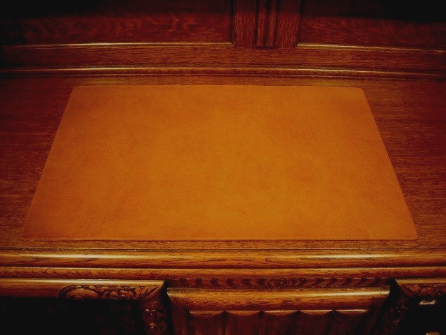デスクをハイクラスにお洒落に飾るレザーデスクマット イタリアンレザー キャメル 受注生産品