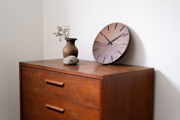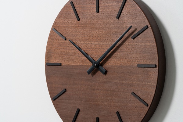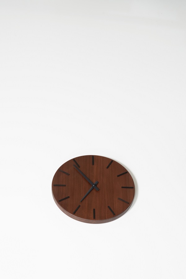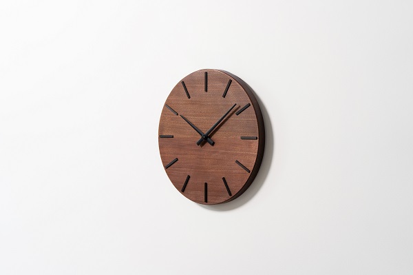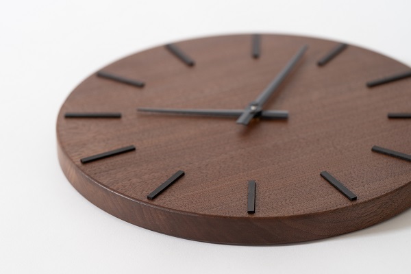 静謐な佇まいの中に品格あるアクセントを忍ばせ、天然木の豊かな表情が時計の顔として静かに際立ちます。