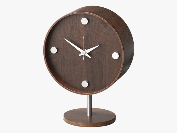 優しいウォルナットのダークブラウンカラーとシルバーカラー(アルミニウム)のコンビネーションが美しいクロックです。