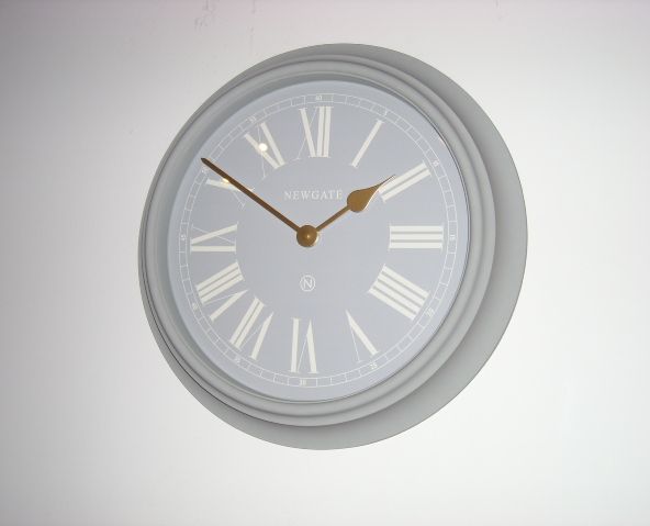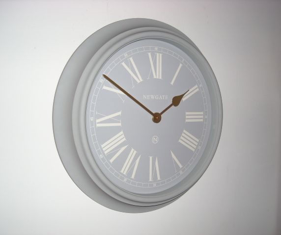 グレイカラーのフレームとグレイフェイスのコンビネーションが美しいNEW GATEの掛け時計です。