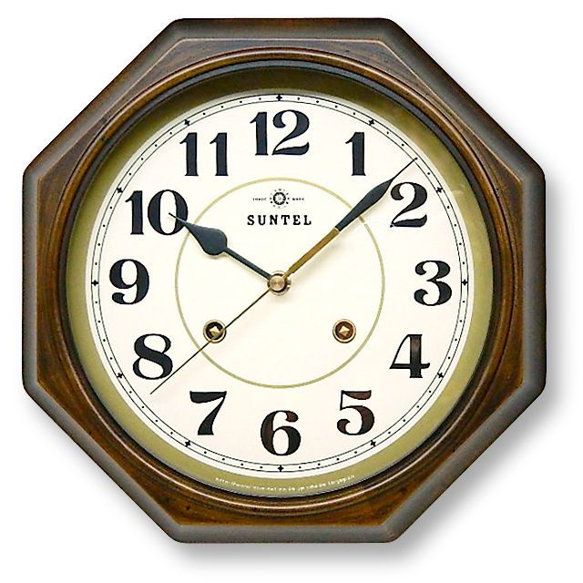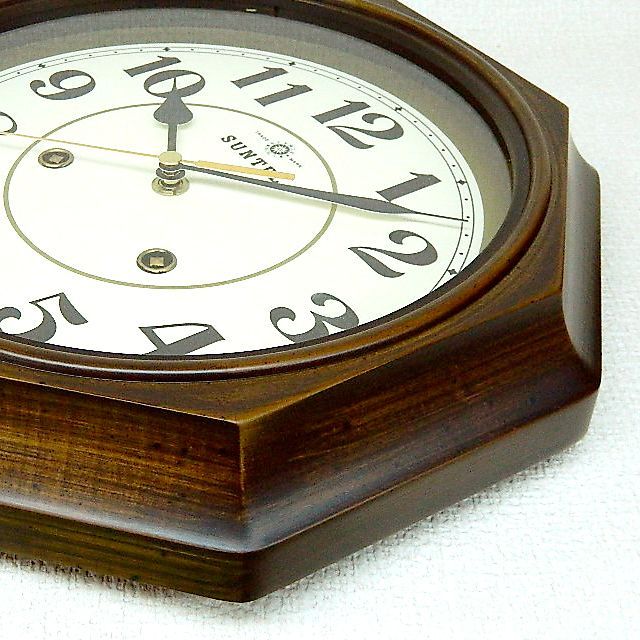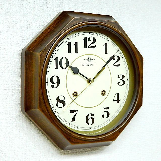 天然木製で暖かみのある八角形の掛け時計(日本製)です。