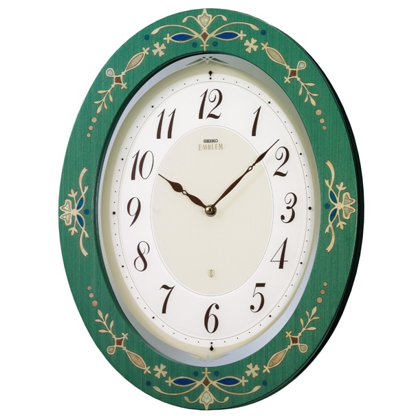 象嵌模様でエレガントにお部屋を飾るSEIKOエンブレムの電波掛け時計です。