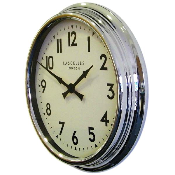 クロームカラーのケース、ブラックカラ―の文字、針がシンプルなクロックは、アラビア数字とシンプルな針のコンビネーションがお洒落です。