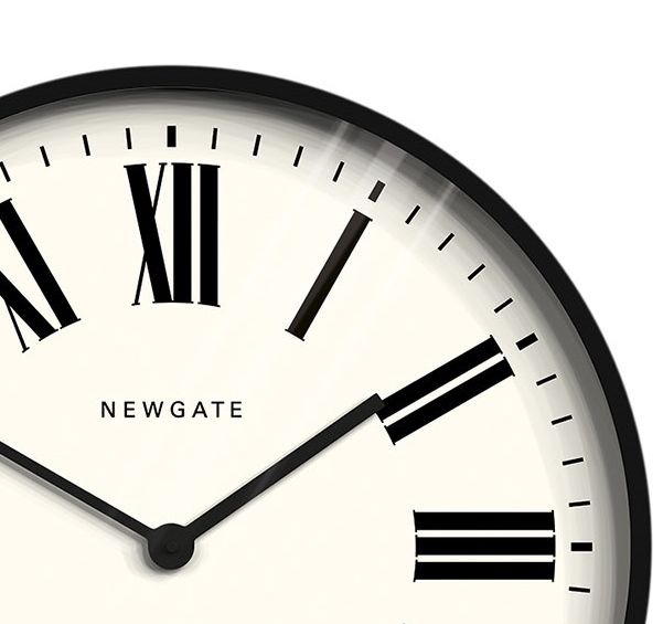 マットブラックのフレームとホワイトフェイスのコントラストが美しいNEW GATEの掛け時計です。