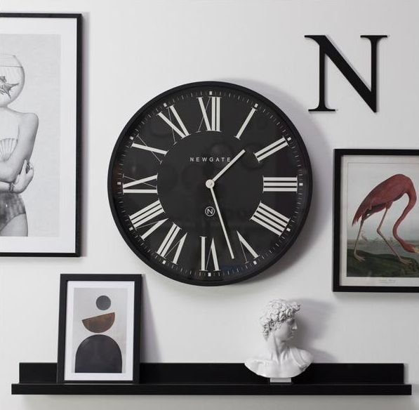 マットブラックの高品質シリコンフレームにシャープな短針と長針、ブラックの文字盤のコンビネーションがお洒落なNEW GATEの掛け時計です。