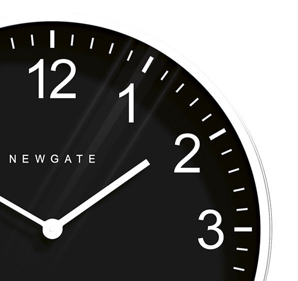 スマートなシリコンコーティングのホワイトフレームに、ホワイトのシャープな短針と長針、ブラックの文字盤のコンビネーションがお洒落なNEW GATEの大型掛け時計です。