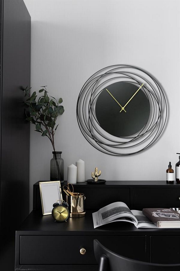 斬新なワイヤーフレームにマットブラックの文字盤、繊細なゴールドカラーの針がベストマッチの掛け時計です。